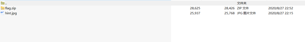 得到两个文件,发现 flag.zip 被加密,且其中也有同样的 hint.jpg,直接明文爆破