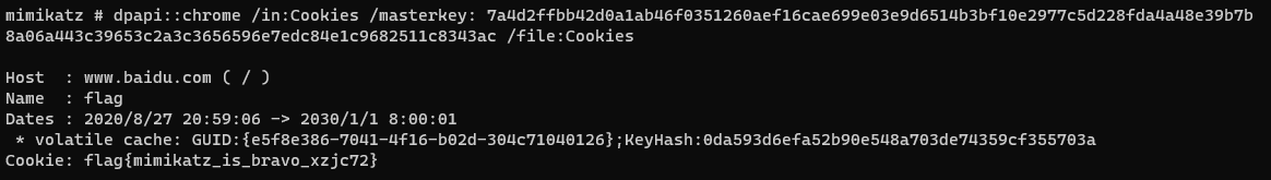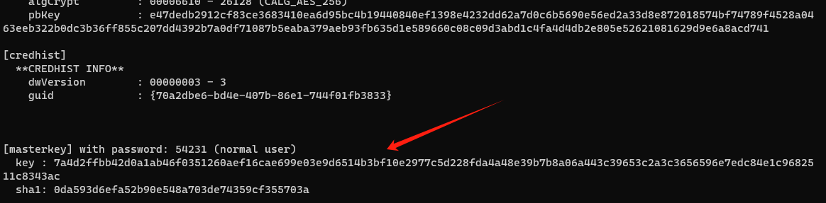 接着根据 SID 压缩包中的 GUID 文件,利用 mimikatz 获取到 masterkey