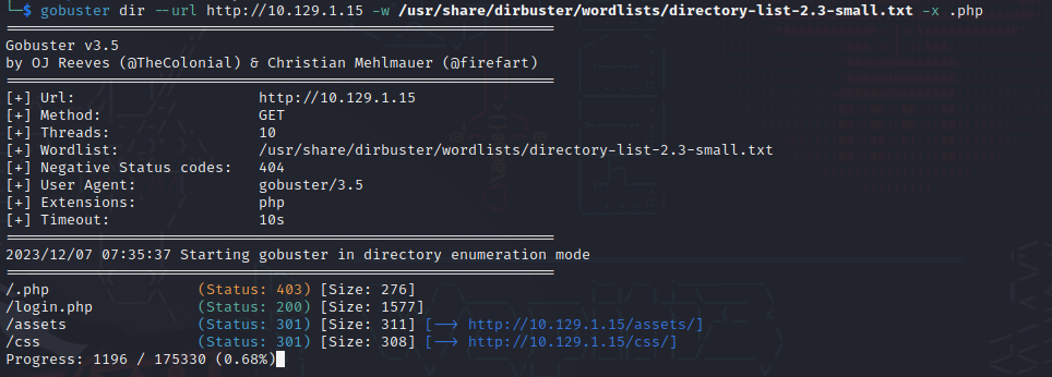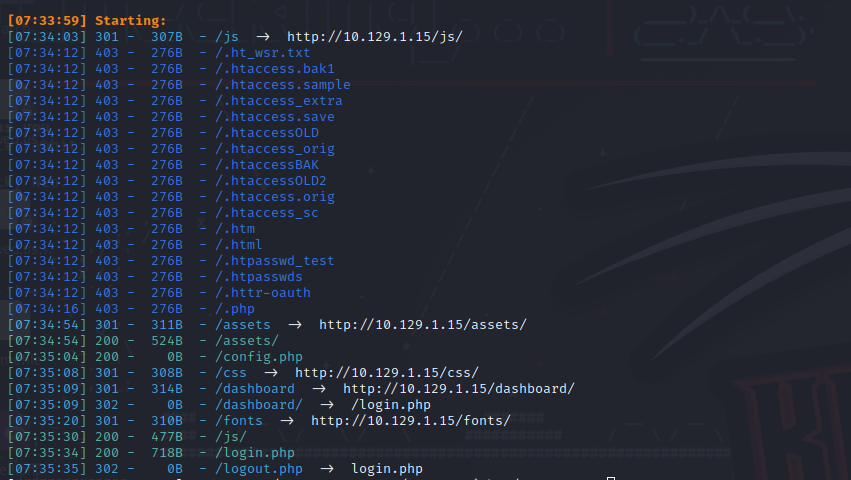 1 | python3 ./dirsearch.py -u 10.129.1.15 |