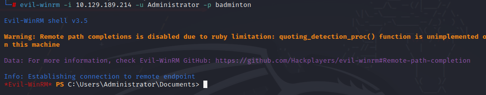 1 | smbclient \\\\10.129.172.139\\C$ -U Administrator |