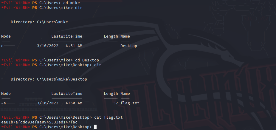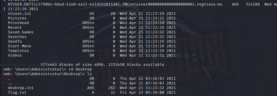 最终的 flag 在 Administrator 用户的 Desktop 中