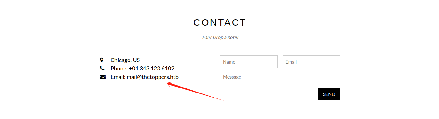 在 web 页面底端找到了带有域名的 email,添加到 /etc/hosts 访问一下