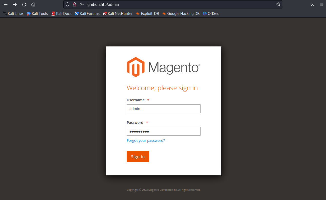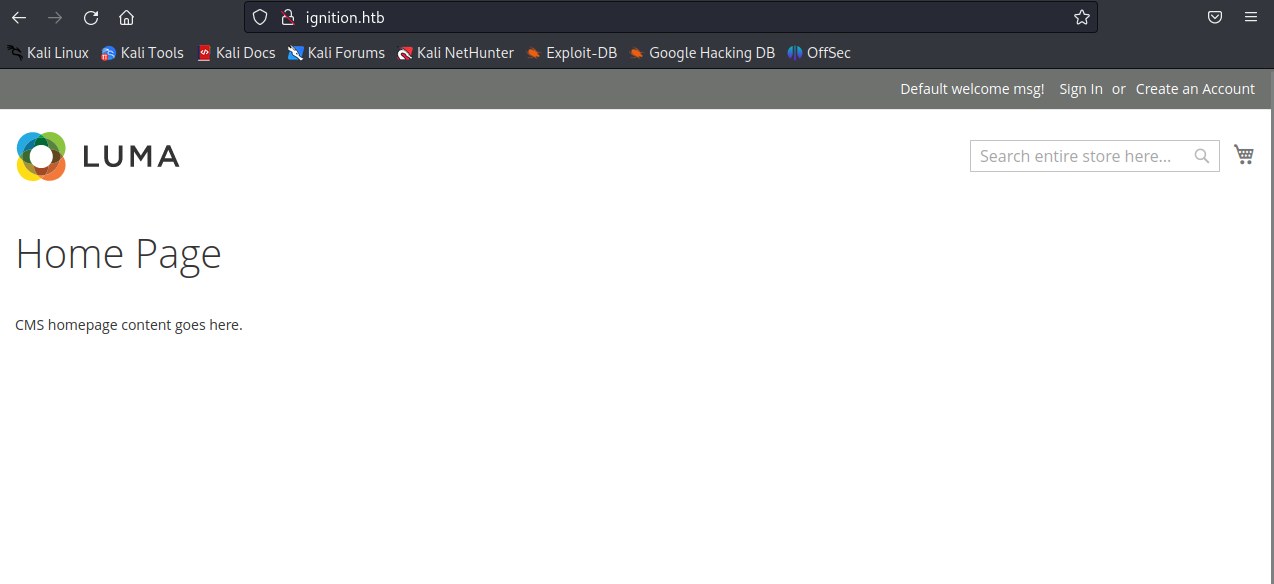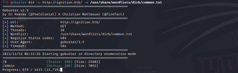 1 | gobuster dir -u http://ignition.htb/ -w /usr/share/wordlists/dirb/common.txt |