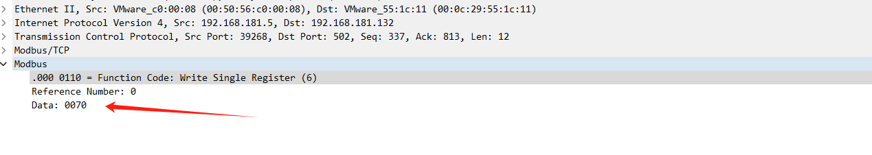 首先先将功能码 6 且选中进行过滤,并将 data 都提取出来