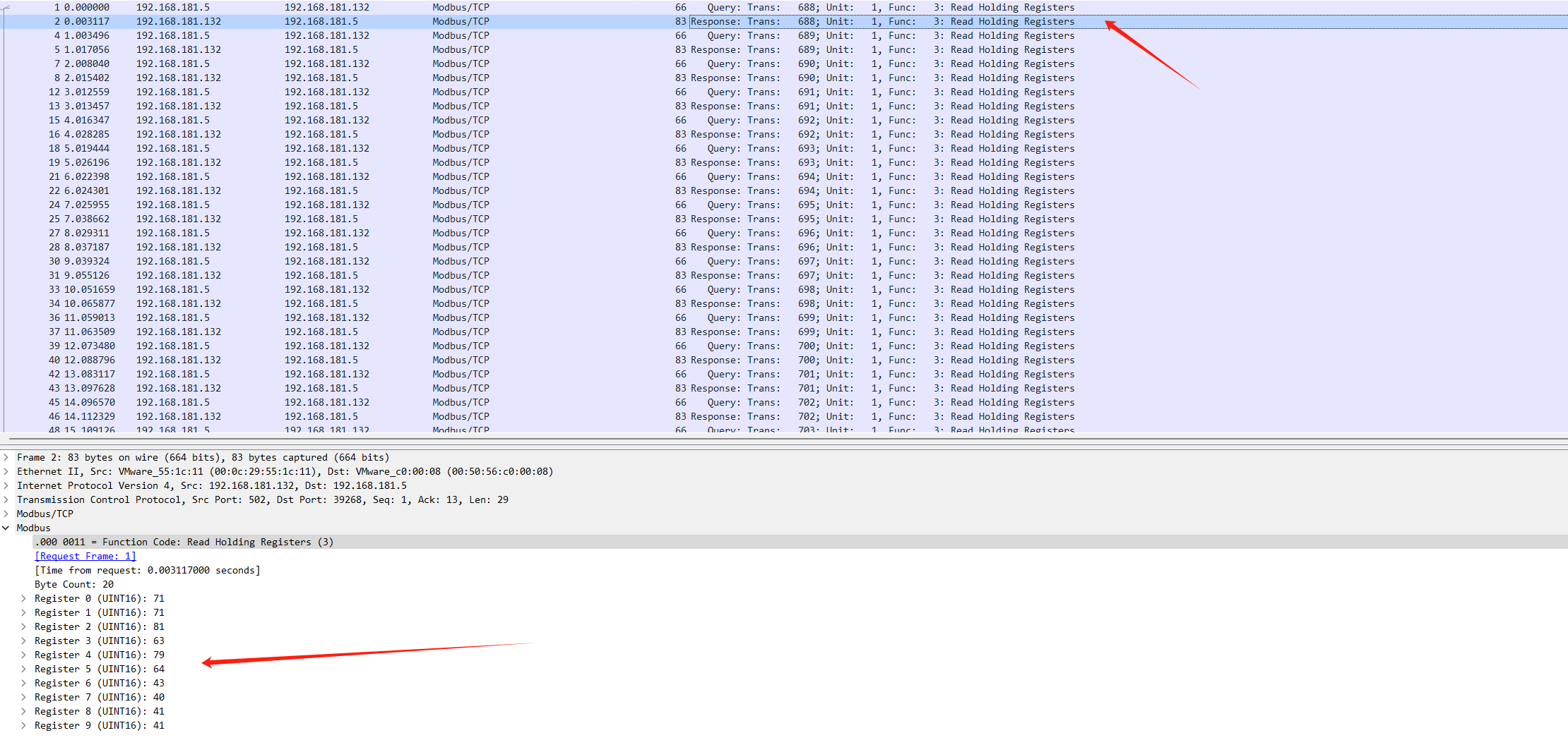 首先协议分级能够发现是 Modbus/TCP 的类型的流量